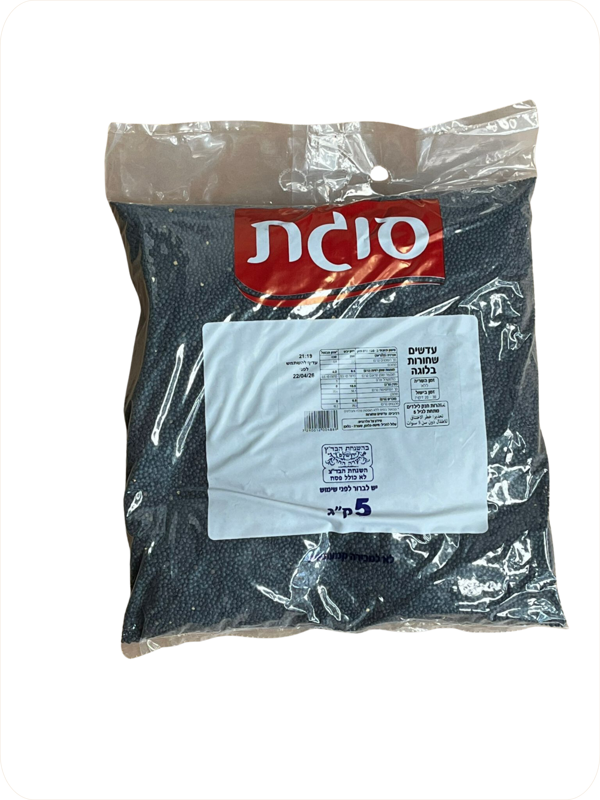 כמות של עדשים שחור - 5 ק"ג